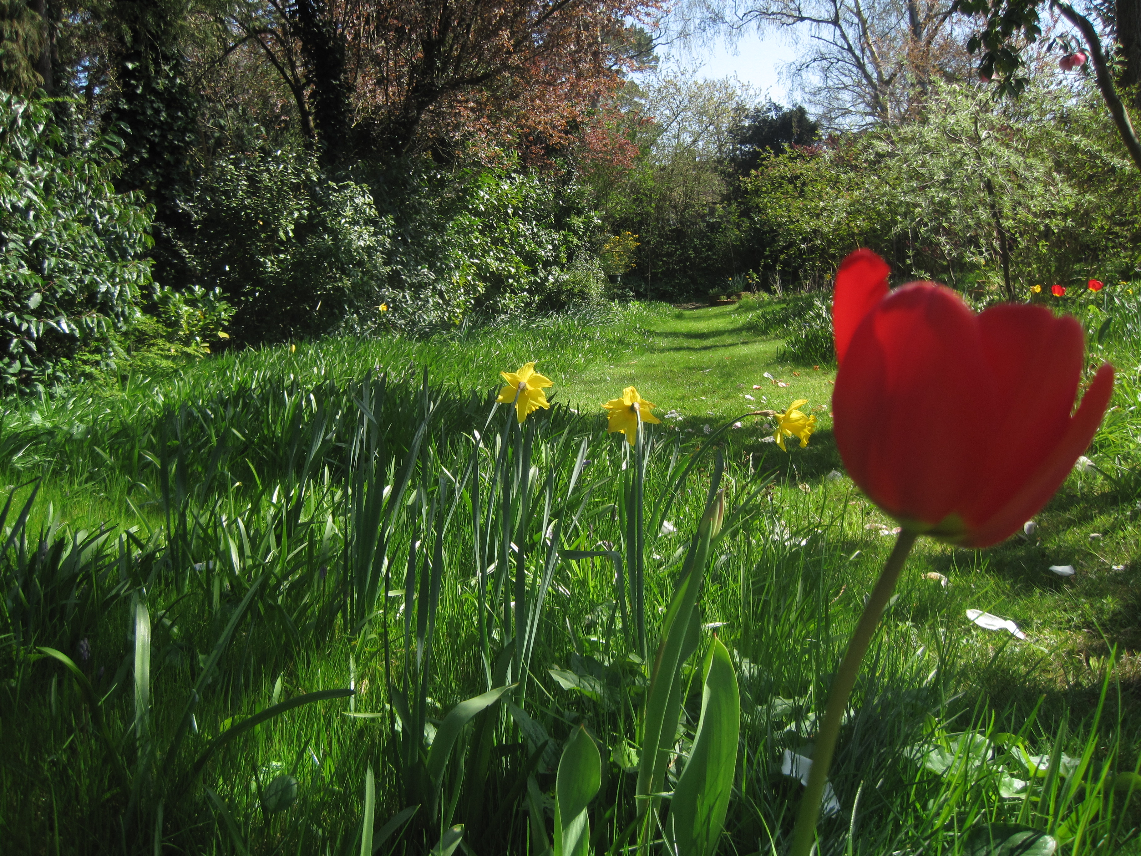 The swathes of bulbs that can be seen to the left are mainly bluebells, which flower later in the month.