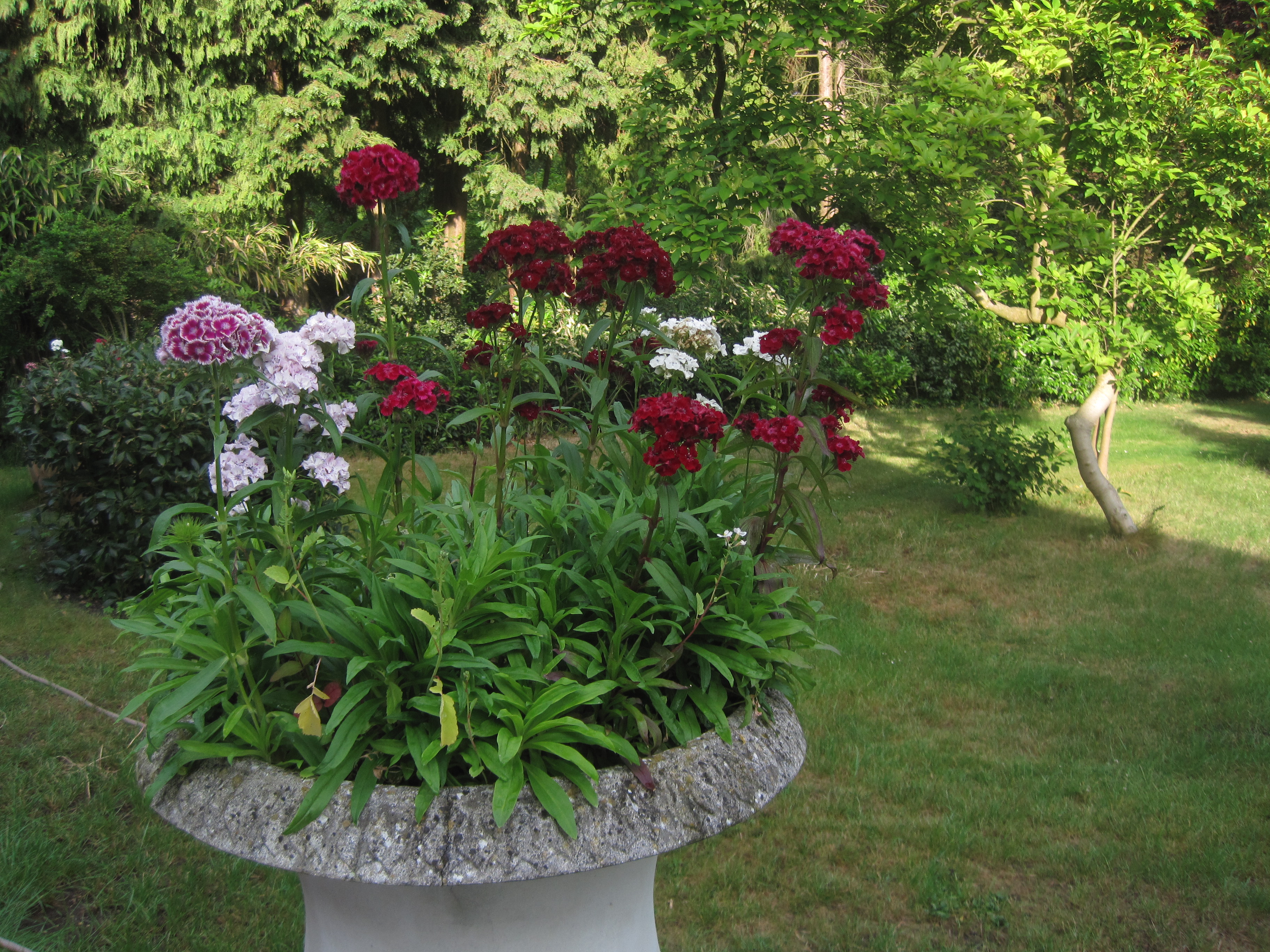 Last year we chose geraniums and petunias, then ordered these Sweet Williams in the autumn.